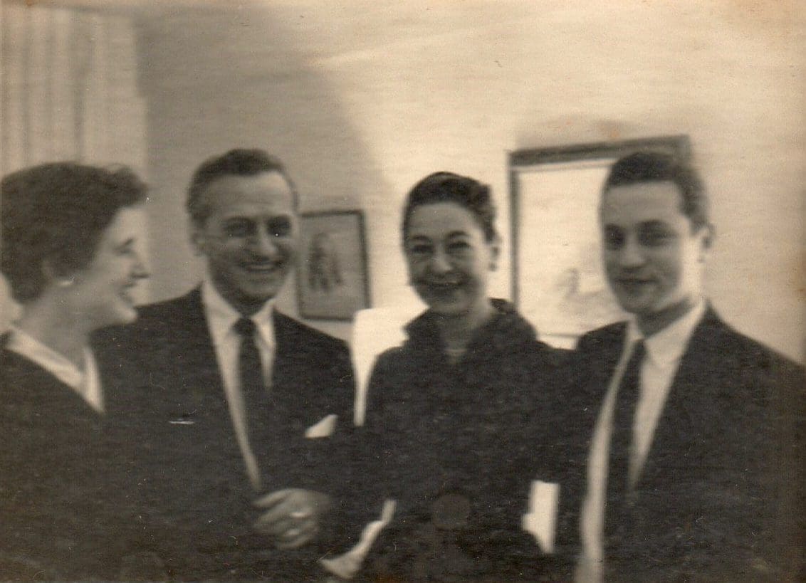 Fig. 17. Michael Tanur, left to right: Judith Tanur, Edward, Libbie, and Reuben Mark, in the Tanurs’ Brooklyn apartment, 1958. Judith and Michael Tanur Collection.