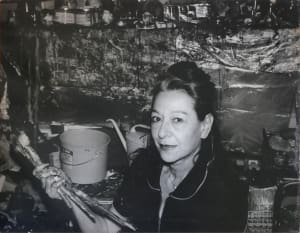 Following their summer in Provincetown, in 1958 the Marks rented an apartment at 35 East 85th Street, fully transitioning from Great Neck. Their daughter Judith and her husband Michael Tanur had relocated to Brooklyn, also that year (fig. 17). In 1962, the Marks moved to 176 East 71st Street, renting a separate painting studio nearby. A separate unit in their building on East 71st later served as her workspace, but they installed metal screens on their living room wall where she could easily rotate displays of her paintings (fig. 18). Mark’s archive contains portraits made in her studio, signed and stamped with the photographer’s name and address (figs. 19 and 20). Also located at 35 East 85th Street, and known as “Dena,” Dinah Rubinstein photographed numerous other artists, including Dorothy Dehner, Willem De Kooning, Edwin Dickinson, Charles “Red” Grooms, Chaim Gross, Robert Motherwell, Louise Nevelson, George Segal, Raphael Soyer, Jack Tworkov, and Andy Warhol.25