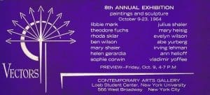 According to its catalog (fig. 32), the Vectors presented fourteen previous shows.44 I have documented twelve including this one. Like other collectives before and since, the Vectors utilized different kinds of spaces as accessible alternatives to the traditional gallery. The group revisited venues known for their arts programming, among them the 92nd Street Y45 and the New York Public Library’s Donnell Library Center.46