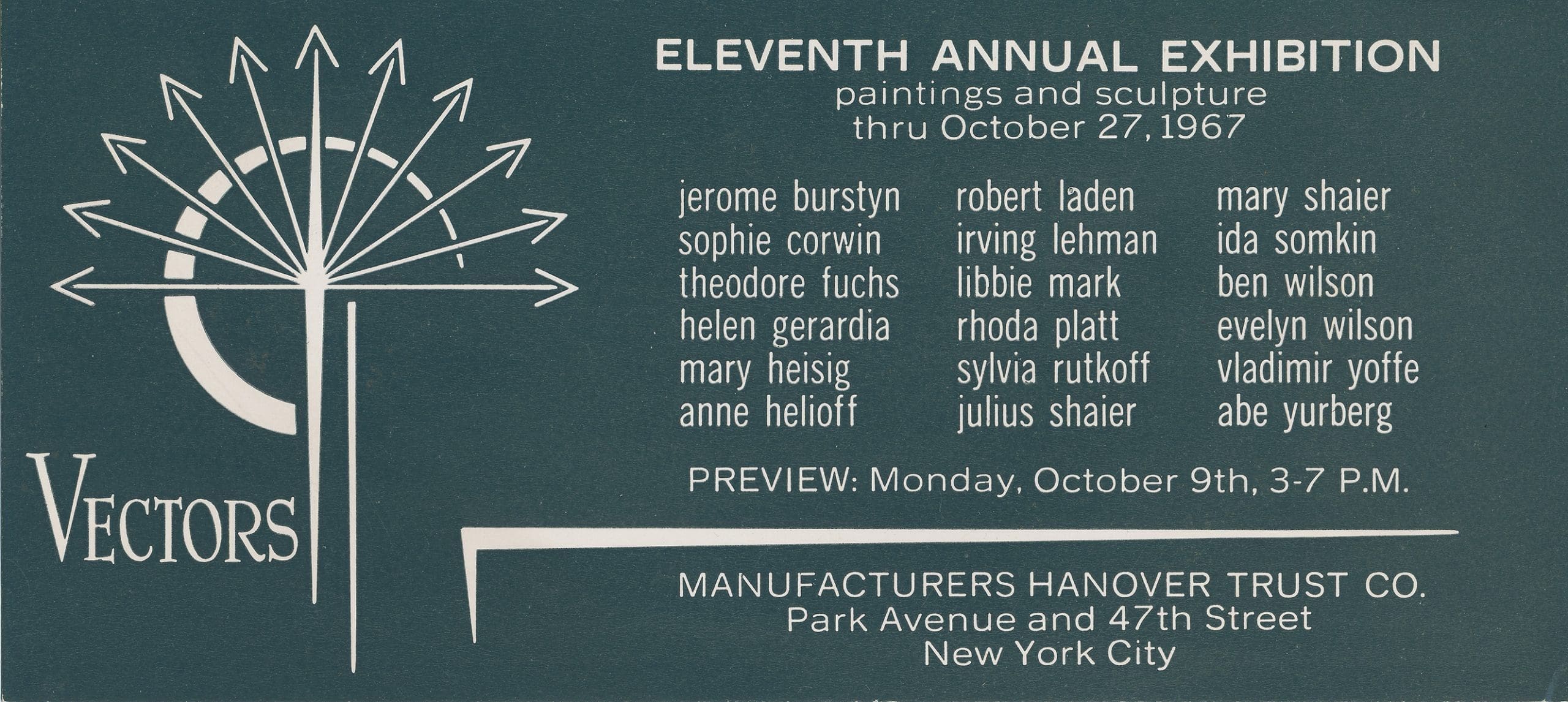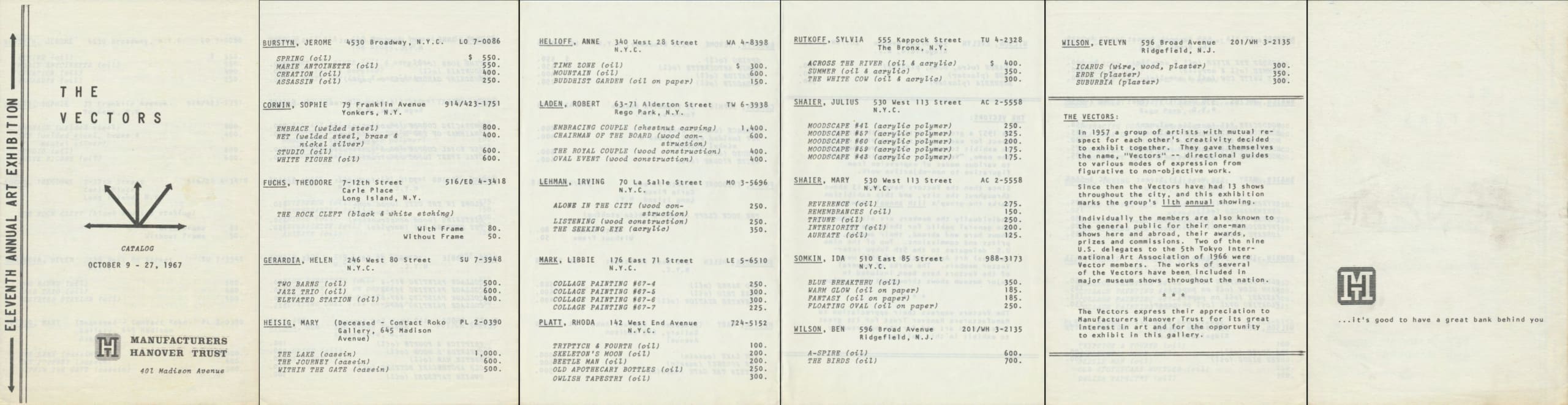 43. Catalog, Vectors Eleventh Annual Art Exhibition, October 9–27, 1967, Manufacturers Hanover Trust, Ben and Evelyn Wilson Papers.