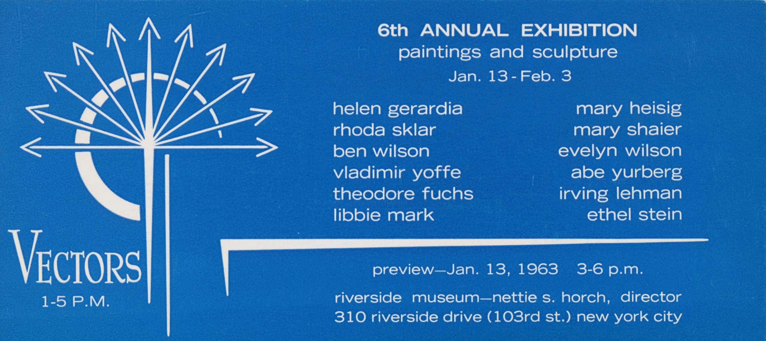 Vectors 6th Annual Exhibition, January 13–February 3, 1963. Riverside Museum, New York, NY